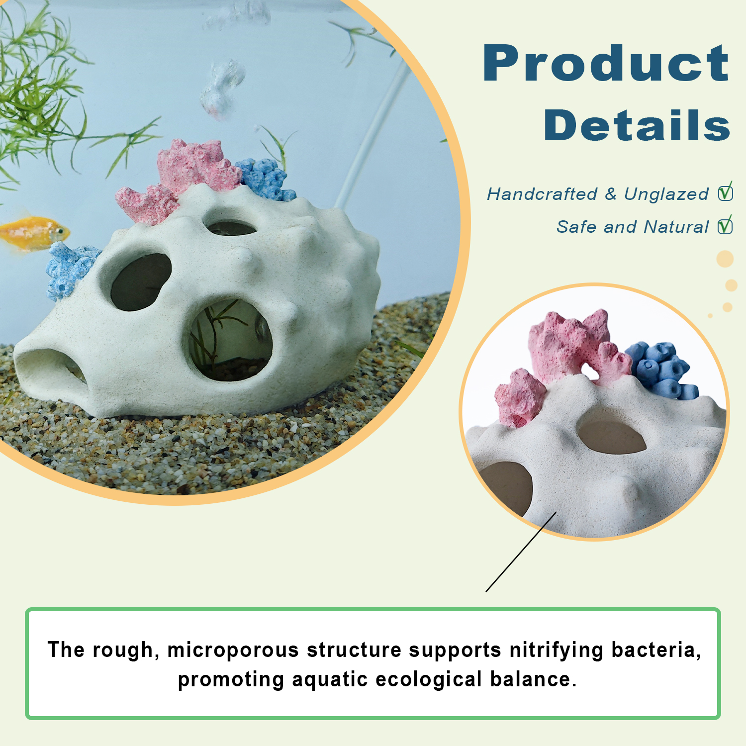 - High-Quality Material: Made of durable white ceramic, this fish tank hideaways is unglazed and chemical-free, reducing water pollution and ensuring the health of your aquatic life.